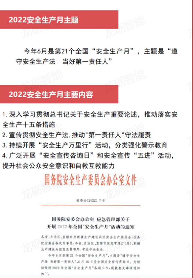 June 2022 is the 21st National "Safety Production Month", and the theme of this year's "Safety Production Month" is to abide by the Safety Production Law and be the first person responsible!