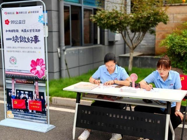 For the "99 Charity Day", "Children's Safe Growth Action Project", from Zhejiang Women and Children Foundation and Zhejiang Jinlin Charity Foundation and the service period from August 10,2022 to July 31,2023; Rural revitalization areas including Guizhou Province, Sichuan Province, Zhejiang Province and other provinces. September 7 solstice on September 9 morning, longsheng industry and trade party branch organized volunteers at the scene of the " 99 public welfare project and donation way, guide the staff attention, participate in public welfare activities, the organizer longli intelligence and longsheng industry and trade party branch joint public welfare project execution unit for souvenirs, through the site, attract more people to understand, participate in public welfare projects, give their love.